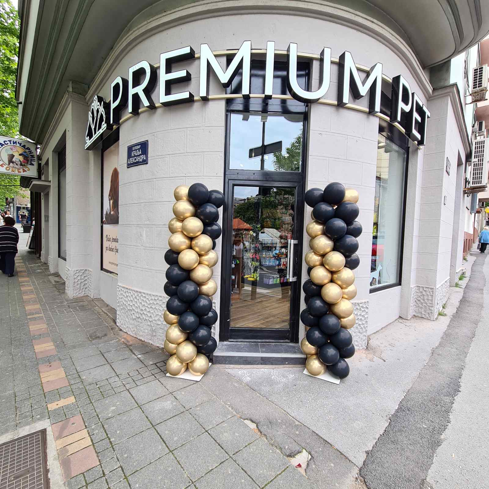 Premium Pet prodavnica za kućne ljubimce na Đermu, smeštena je na ćošku Bulevara kralja Aleksandra i ulice Branka Krsmanovića, na svega par metara od Đeram pijace.